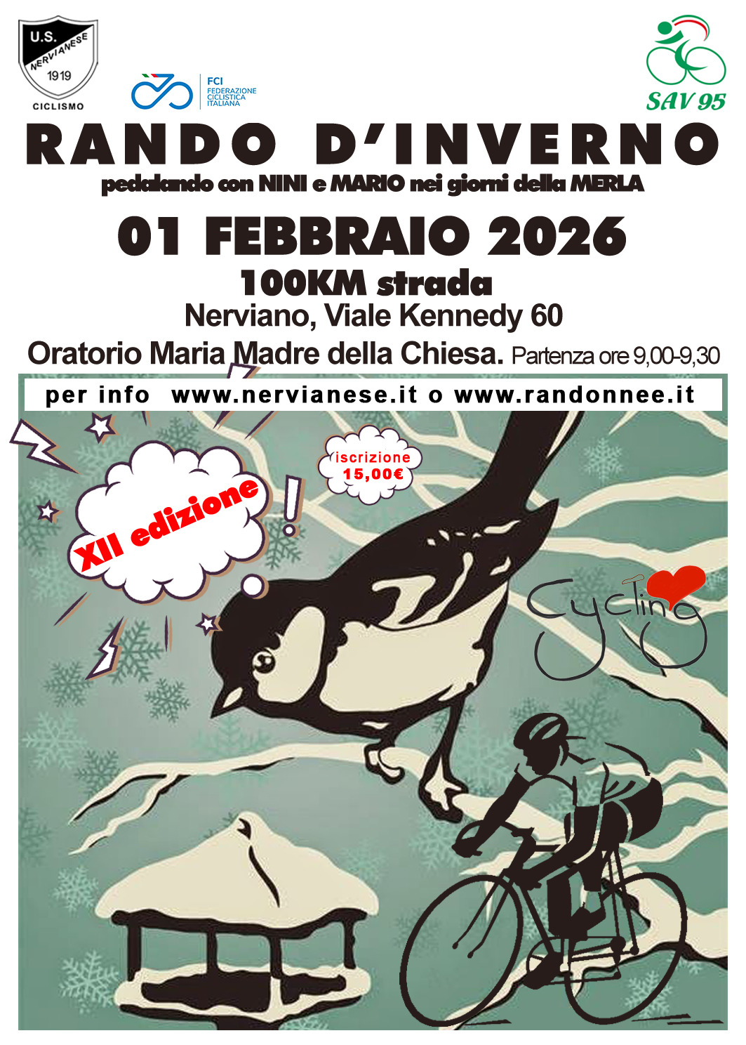 La Randonnee del Ticino , la Classica di Primavera, torna domenica 1 marzo a Nerviano e festeggia la sua 27 ’ edizione. Una veloce randonnee di inizio stagione che si snoda tra Milano, Novara e Pavia, pensata anche per chi vuole provare l'esperienza di una lunga distanza in tranquillità, senza difficoltà altimetriche. Ritrovo presso l'oratorio MMDC, via Kennedy a Nerviano dalle 7,00. Partenza dalle 8,00: il percorso è interamente frecciato. Lasciato Nerviano, si costeggia il Naviglio Grande, canale navigabile che arriva fino alla darsena di Porta Ticinese a Milano, per poi attraversare il Ponte di Ferro sopra il Ticino, entrare in Piemonte e giungere a Oleggio. Si supera velocemente Momo e arrivati ad Agnellengo i due percorsi si dividono: solo i centochilometristi, fatto il controllo, rientrano passando, per Galliate e Boffalora Ticino; i randagi che raddoppiano i chilometri proseguono su strade secondarie tra campi e antiche cascine, direzione Casalino e Palestro. Siamo in Lomellina, nella parte sud-occidentale della Lombardia, compresa tra i fiumi Sesia, Po, Ticino e il basso novarese, famosa per le sue risaie, arricchite dalla presenza di colonie di aironi. Al km. 95 arriviamo al primo controllo di Celpenchio: il tempo di timbrare e rifocillarsi e si riparte per Cozzo, con il suo castello risalente al 1214. Nel silenzio delle coltivazioni di riso, alimentate da canali artificiali, potremo ammirare scorci d'inizio primavera della pianura lombarda. Al km 140 riattraversiamo il Ticino sul Ponte delle Barche, struttura storica, esempio di notevole capacità ingegneristica; giungiamo a Bereguardo e iniziamo a risalire verso l'arrivo. Attraversato Abbiategrasso arriviamo alla Cascina Bullona: rifornimento e controllo. Un ultimo sforzo, qualche cavalcavia e si arriva al passa party di Nerviano.
